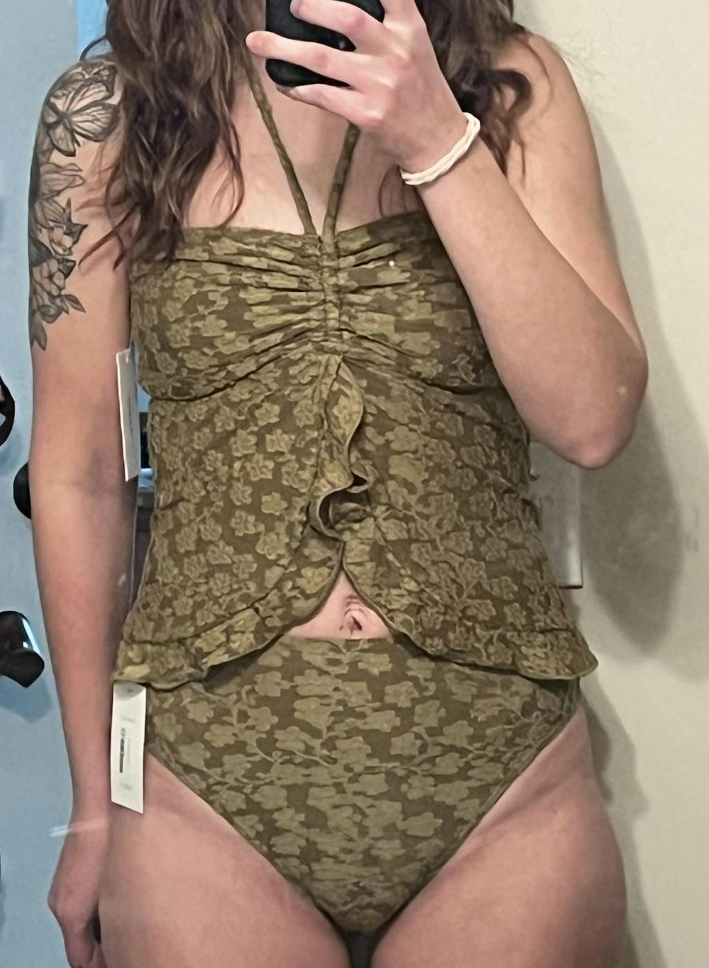 I love the color and fabric, but the cut isn’t great. It framed by belly button so weirdly. And the top seems like it needs some grip on it because it slid down any time I moved my arms. I have nonexistent boobs though, so you might not have that issue. I do love that Geode does free returns for in store credit though. This was not my suit but I’m excited to find it!