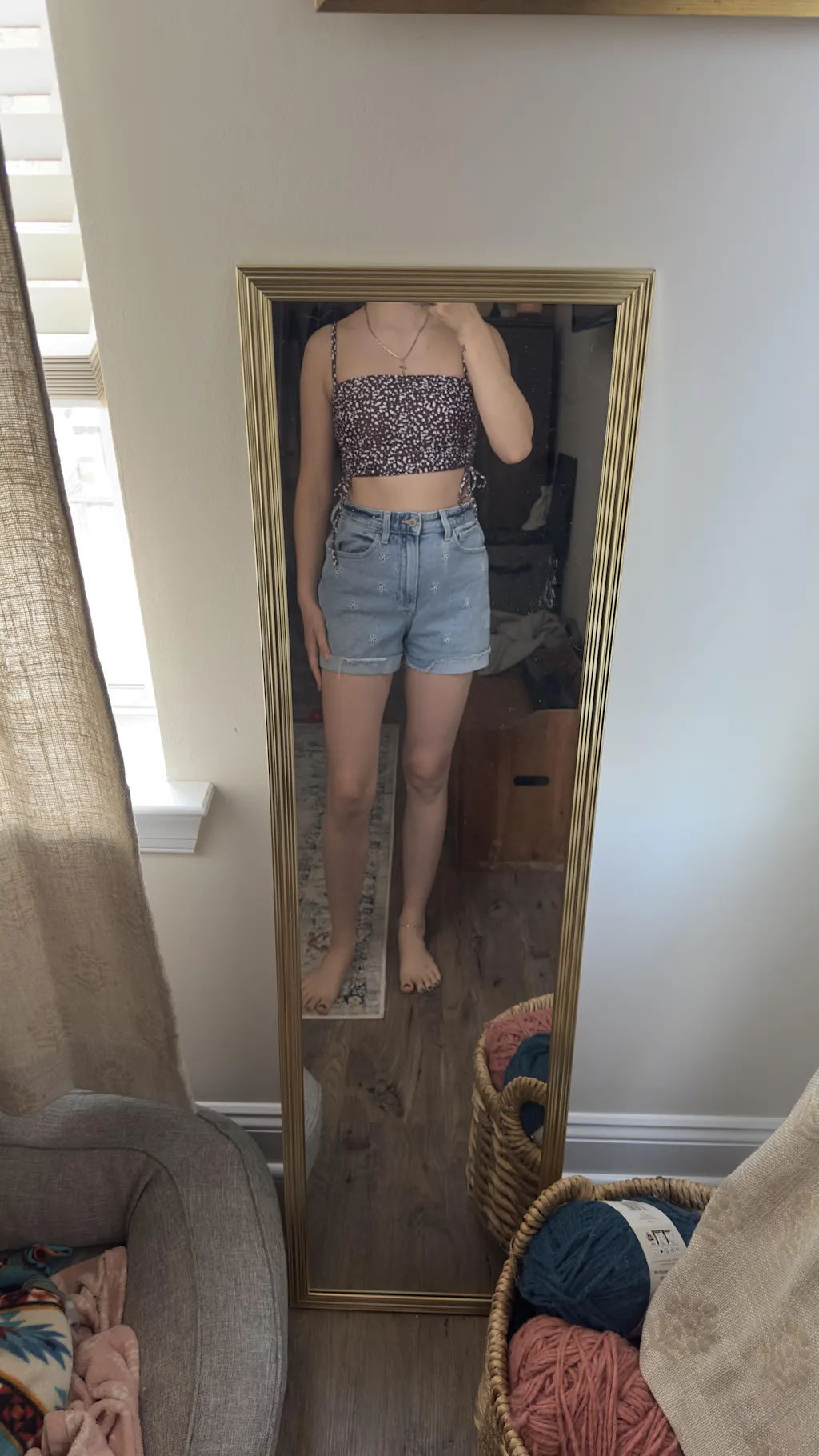 I love this top! Its cute and feminine but still plenty of coverage. Super comfortable too! 🩵
